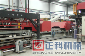該生產線由自動配料、連續攪拌、滑板式螺旋擠壓、托板自動上板、板料輸送、成型控製、同步切割、二次切割、自動碼垛、初凝養護溫濕度控製、總控機等主要部分組成。主要技術參數如下: