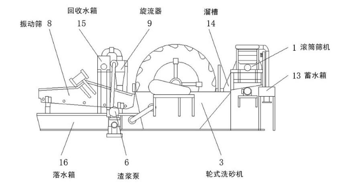 洗砂回收一體機主要分為洗砂部位和細砂回收部位;洗砂部位和一般的輪式洗砂機功能相同,用於水洗砂、脫水、脫泥;而回收部位可根據客戶的需求組合,需要細砂回收的話可以連接一般的細砂回收係統,需要細砂脫水回收的話可以連接脫水型細沙回收機,需要不同的出砂效果的話也可以配置多層脫水篩。